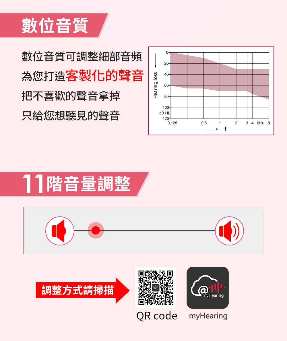 ● 適用於輕、中度聽損,50~70分貝聽損適用