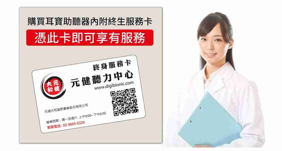 凡購買耳寶助聽器,憑內附終身服務卡,即可到全台特約中心做維修相關服務 敬請撥打02-8665-0329預約服務,以節省您的等待時間