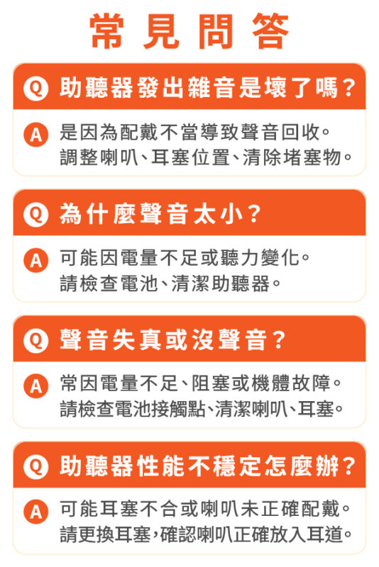 助聽器小學堂助聽器是什麼?怎麼選才舒服?新手必讀的助聽器推薦指南 Posted on 2025 年 5 月 18 日2025 年 5 月 24 日 by 律徵 文章目錄 助聽器是什麼? 助聽器有哪些類型? 助聽器推薦 耳寶助聽器介紹 常見問答 助聽器是什麼? 助聽器是一種專為聽力損失者設計的電子輔具,能幫助使用者放大聲音、改善聽覺感受。透過麥克風收音、擴大器放大聲音,再經由揚聲器(喇叭)將處理後的聲音傳送到耳朵。簡單來說,助聽器不是單純「放大聲音」的擴音器,而是一種針對個人聽力狀況精密調整的聽覺補助工具,需要經過聽力檢測與專業調整,才能真正發揮效果。 要了解助聽器的作用,我們可以先認識「聽覺系統」的基本構造,主要分為外耳、中耳、內耳三個部分: 外耳:聲音的接收器 外耳包含耳廓與耳道,負責收集聲音並將聲波傳送至鼓膜。當外耳出現阻塞(如耳垢太多)或先天結構異常時,可能會影響聲音的傳遞,但這類問題通常可透過醫療處理改善,不一定需要助聽器介入。 中耳:聲音的傳導通道 中耳位於鼓膜與內耳之間,內含三塊聽小骨(槌骨、砧骨、鐙骨),能將鼓膜的震動放大,再傳送至內耳。中耳若出現感染(如中耳炎)或骨骼硬化等問題,也會造成所謂的「傳導性聽損」,這類情況視嚴重程度,有些可透過手術治療,有些則可考慮配戴特殊類型的助聽器。 內耳:聲音轉化為神經訊號的核心 內耳中的耳蝸負責將聲波轉換成神經訊號,傳送至大腦進行解讀。這裡的「毛細胞」一旦退化或損傷,就會造成「感覺神經性聽損」——這是最常見也是最適合使用助聽器的聽力問題,例如長者因年齡退化、長期噪音暴露或藥物影響所造成的聽力下降。 助聽器的角色:補償內耳退化,強化聽覺 助聽器的功能,就是針對內耳毛細胞已退化的部分,透過技術放大並優化聲音訊號,讓使用者能更清楚聽到語音、人聲與環境聲。因此,配戴助聽器的第一步,通常是接受完整的聽力檢查,釐清是哪一段聽覺系統出現問題,再由專業人員協助挑選適合的機型。 助聽器有哪些類型? 專文《2025助聽器推薦|耳掛、耳內、耳道、脖掛、口袋型助聽器怎麼挑?》 詳細介紹了助聽器類型,從外觀、配戴位置到功能設計皆有所不同,主要依「配戴位置」分為耳掛型(BTE)、耳內型(ITE)、耳道型(ITC/CIC)、脖掛型、口袋型;而選擇的關鍵則取決於使用者的年齡、聽力損失程度、生活需求與配戴習慣。 舉例來說,耳掛型助聽器穩定度高、功率強大,適合重度聽損與年長者;耳內型與耳道型助聽器外觀隱蔽,配戴輕巧,適合在意外觀或希望自然聆聽體驗的新手族群;而脖掛型與口袋型助聽器則更適合需要高音量補償、但不追求全日配戴者或手部活動不便的長輩使用。 不論是追求外觀隱形、還是需要強力放大與操作簡便的機型,現代助聽器都能提供不同的選擇。建議在配戴前先透過專業聽力檢測與諮詢,選擇最適合自身聽力狀況與生活習慣的類型,才能真正提升配戴舒適度與聆聽體驗。 助聽器類型 外觀位置與特徵 適合對象 耳掛型(BTE) 機身掛於耳背,聲音透過導管傳至耳模 各種程度聽損者,特別是兒童與重度聽損者 耳內型(ITE) 完全嵌入耳殼內,根據耳型量身訂做 輕度至中度聽損者 耳道型(CIC/ITC) 部分或完全隱藏於耳道內,極為隱密 輕度至中度聽損者,注重外觀者 脖掛型 主機掛於頸部,耳機與耳道連接 活動頻繁者、中重度聽損者 口袋型 主機放衣袋或掛胸前,以線連接耳機 高齡者、重度聽損者、操作不便者 助聽器類型 優點 注意事項 耳掛型(BTE) 功率強大、耐用穩定、可更換耳模 體積較大,配戴時明顯 耳內型(ITE) 外觀較隱密,操作簡單,佩戴舒適 空間有限,功能與電池續航受限 耳道型(CIC/ITC) 幾乎看不見,自然聽感佳 操作困難、電池小,對手指靈活度有要求 脖掛型 支援藍牙、通話便利、重量平均分布 需配戴於頸部,適應期略長,對穿搭有影響 口袋型 音量大、操作簡單、價格親民 體積大、攜帶不便、外觀不美觀、音質不如數位型 助聽器推薦 以下提供PTT討論度最高的國產助聽器品牌—耳寶,從價格、功能到使用族群一次整理,無論你是長輩想自用,還是子女幫爸媽挑選,都能找到合適選擇! 推薦款式一:耳寶助聽器 6ELA/6ELB(雙耳款)|NT$16,800 耳寶6ELA/6ELB結合科技感外型與日常便利性的智慧輔聽裝置。採用無線設計與時尚造型,融入日常穿搭,擺脫傳統助聽器的刻板印象。 內建耳寶獨家毫秒移頻技術與即時通透功能,有效減少回音與悶塞感,即使長時間配戴也能保持自然聽感。多種場景模式切換,如室內對話、戶外通話或觀看電視時皆能自動切換音源,並支援連接手機、音樂與電視等設備,讓助聽器不只是輔具,更是智慧生活的一部分。 適合對象: 助聽器新手 輕中度聽損者 注重外觀與多功能性的年輕長輩 推薦款式二:耳寶 8頻耳掛式助聽器 B1|NT$29,800~NT$59,600 採用氣導管設計及使用第一等級醫療器材,不僅耐用易清洗,也能穩定傳導聲音至耳道內,減少聲音失真。若符合健保補助資格,可申請助聽器補助,有效減輕購買負擔。配備數位8頻處理技術,可針對不同頻段做細緻調音與客製化設定,讓你聽得更清楚、聲音更真實自然。操作簡單、配戴穩固,是長期使用與嚴重聽損者的可靠選擇。 適合對象: 中重度(50~90分貝)聽力損失者 有醫療補助資格者 需要高穩定性與強效放大者 項目 耳寶 6ELA/6ELB(雙耳款) 耳寶 8頻耳掛式助聽器 B1 建議售價 NT$16,800 