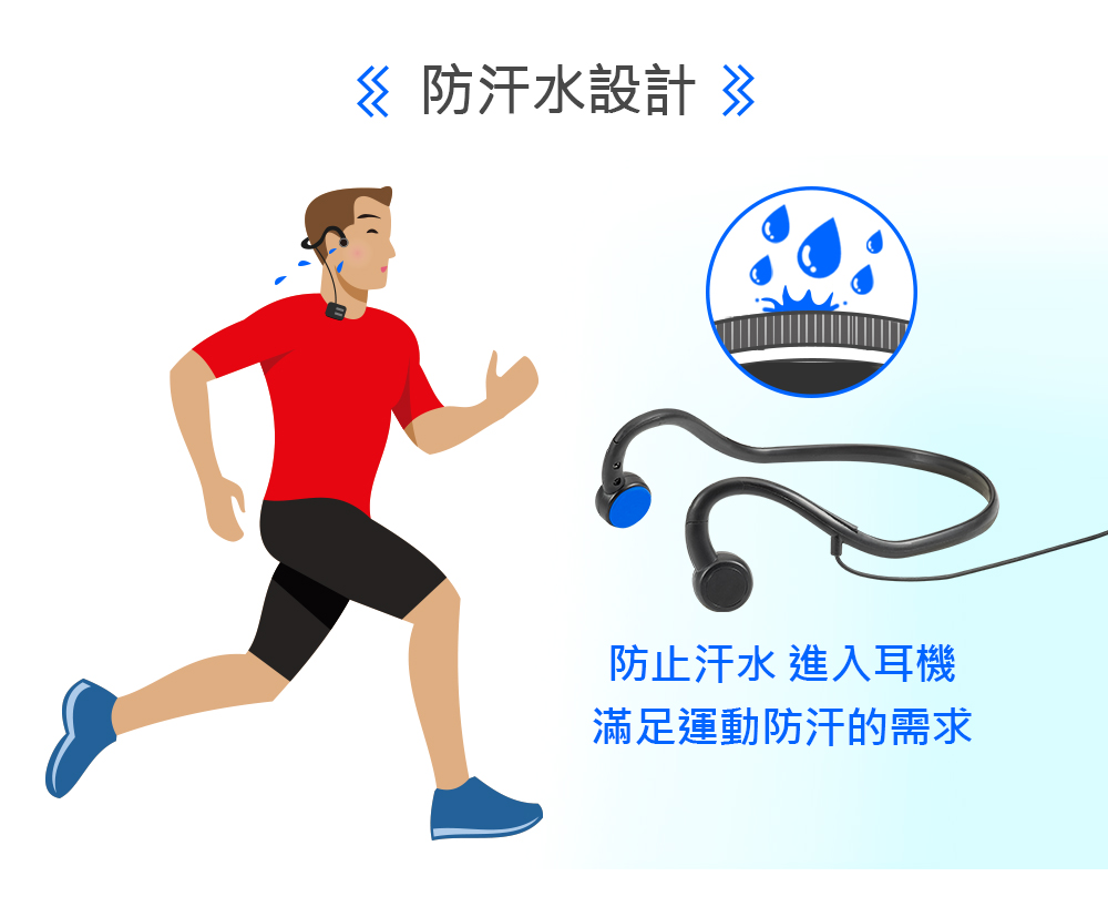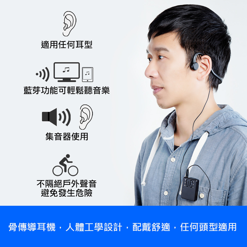 ● 骨傳導設計,耳朵不會有悶塞感,久戴不痛。