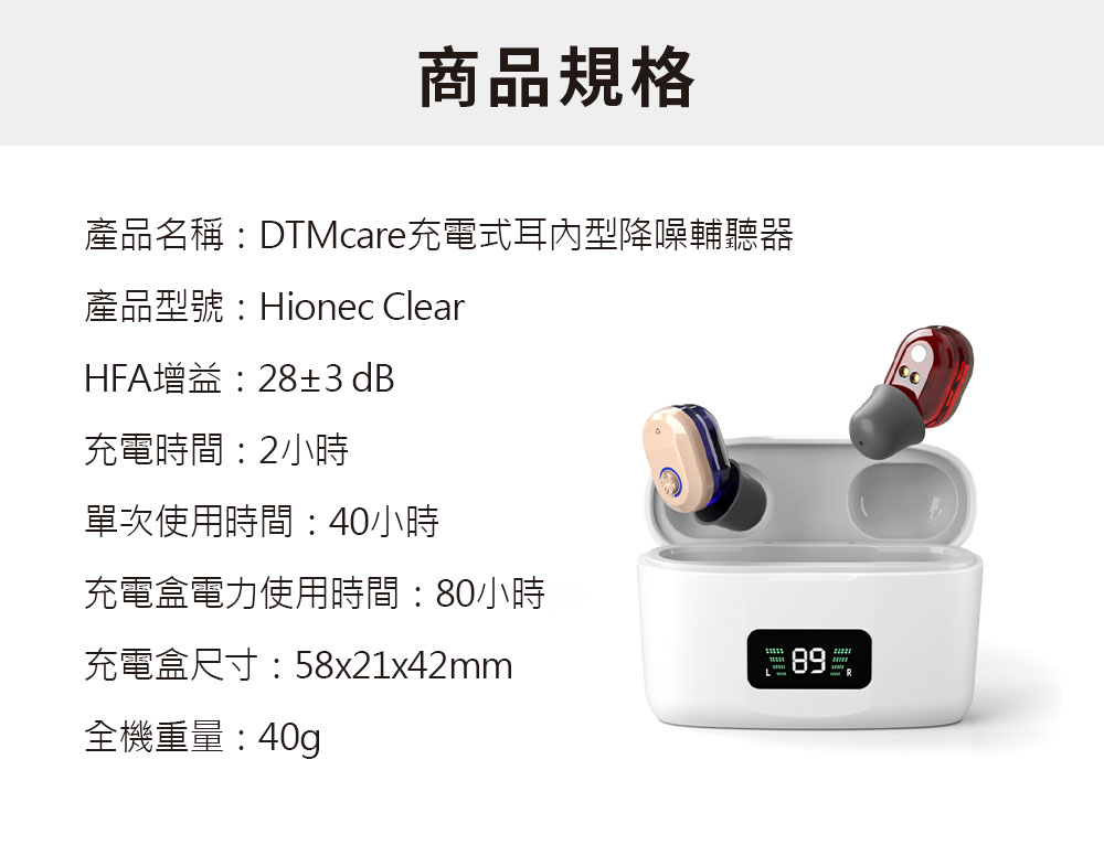 DTMCARE ★ HIONEC CLEAR充電式耳內型降噪輔聽器(雙耳)