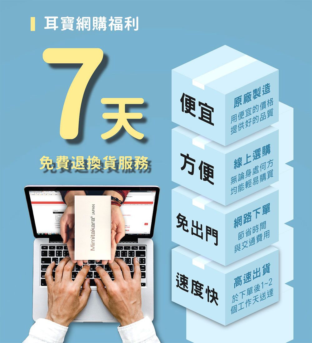 耳寶網購福利 7天免費退換貨服務