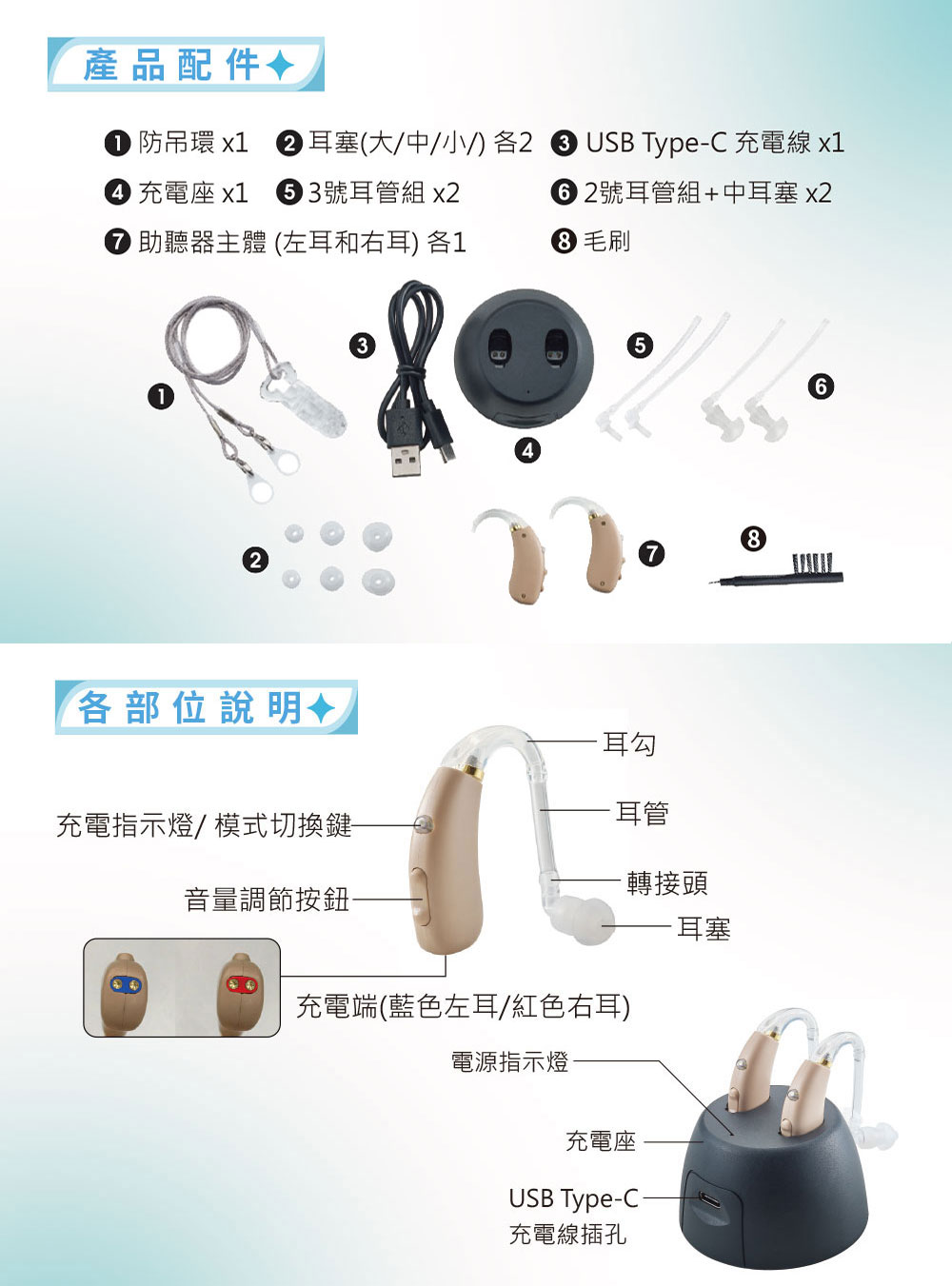● 充電式設計免用鋅空氣電池,節省、方便又環保。