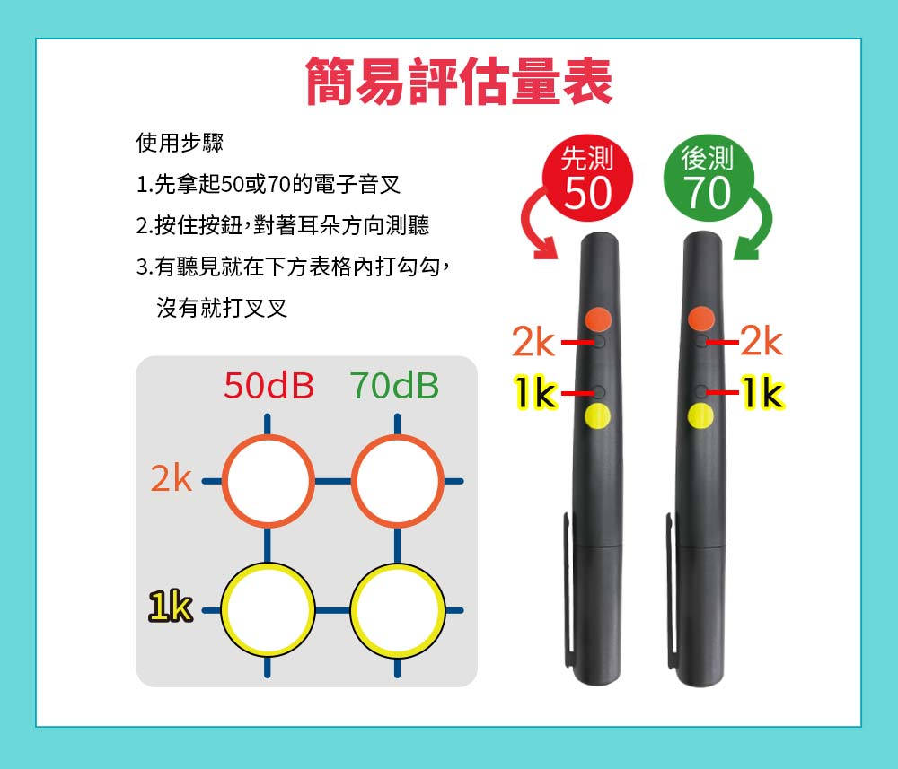 ● 耳寶電子音叉,可在家自我測驗聽力。