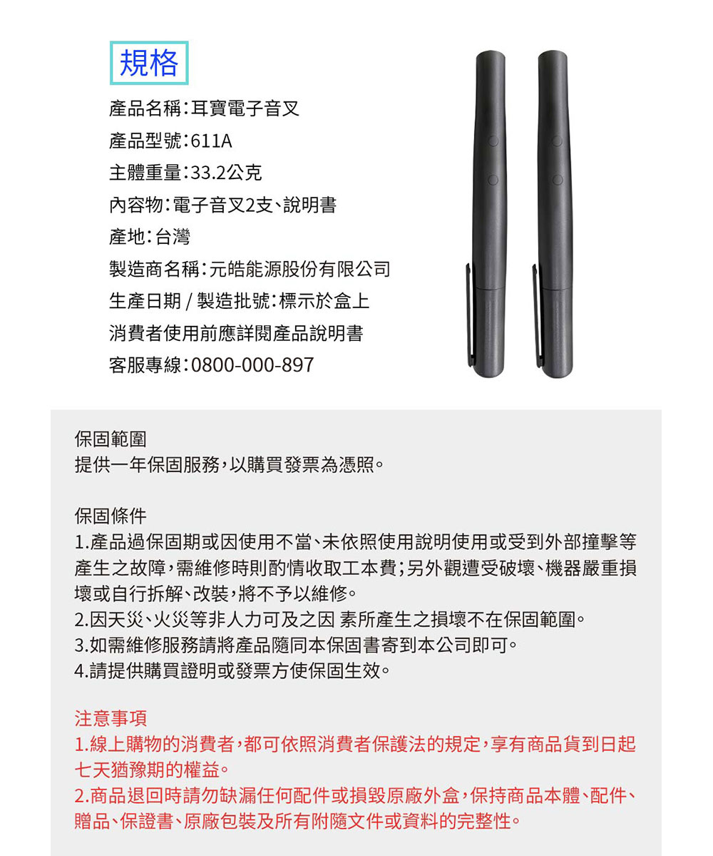 ● 耳寶電子音叉有7天免費鑑賞期,使用完電子音叉後,無須再做使用,即可免費退貨。