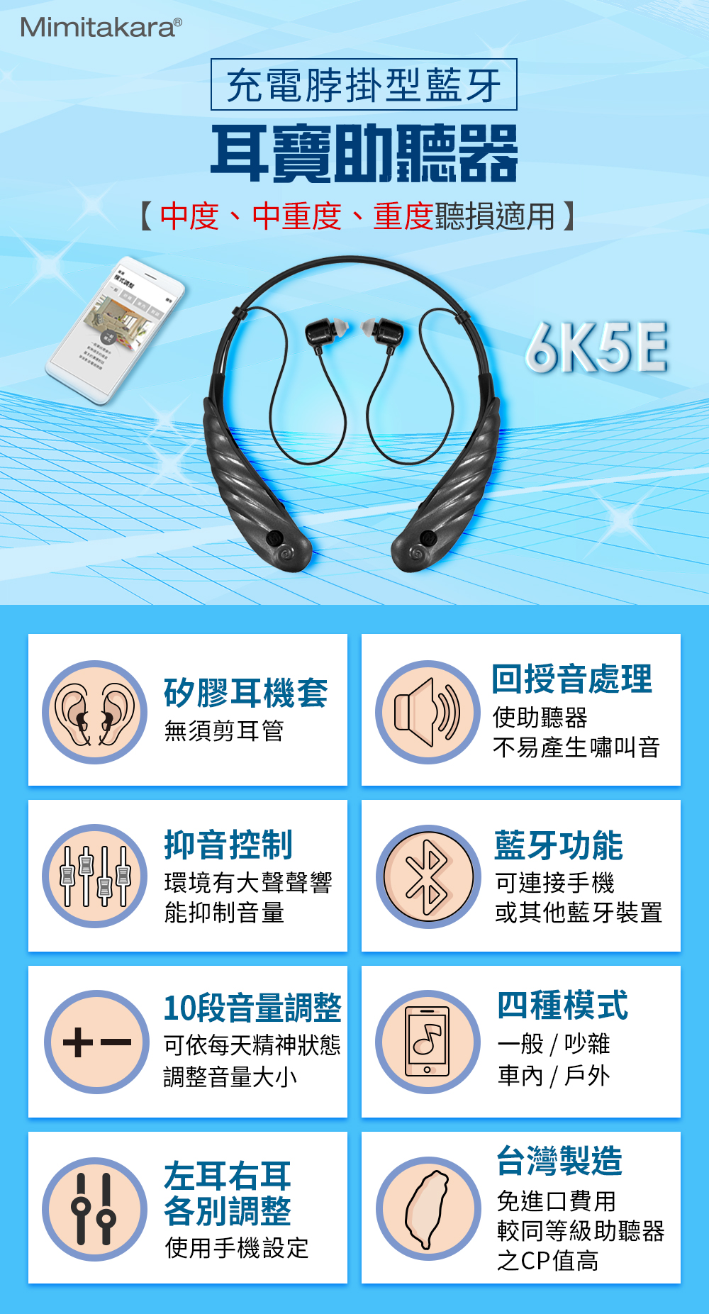 耳寶助聽器6K5E 充電脖掛型藍牙耳寶助聽器