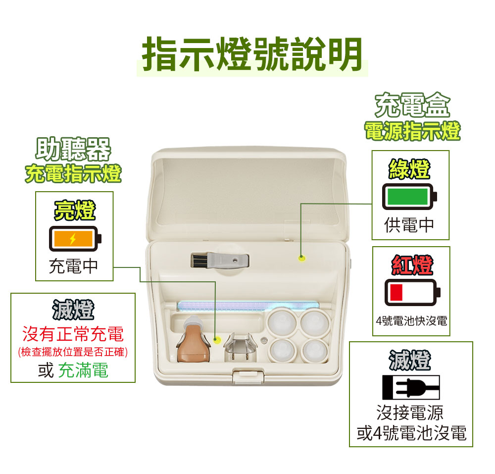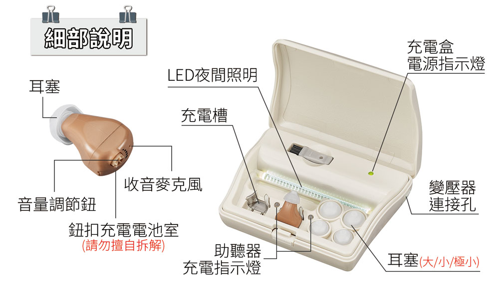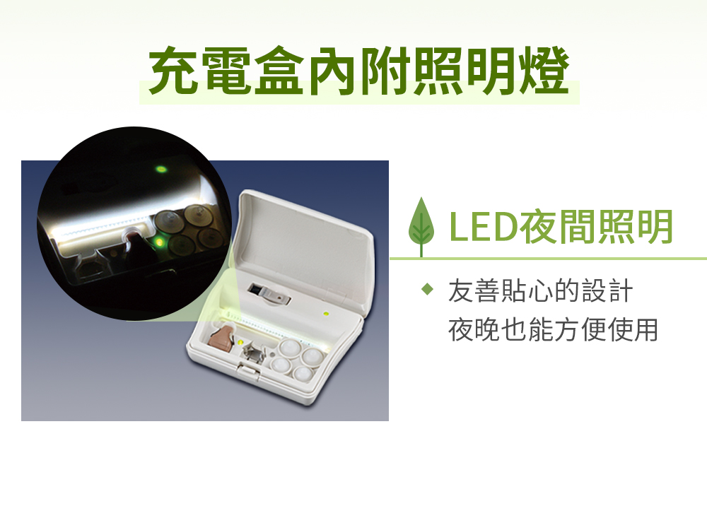 •充電式設計免用鋅空氣電池,節省、方便又環保