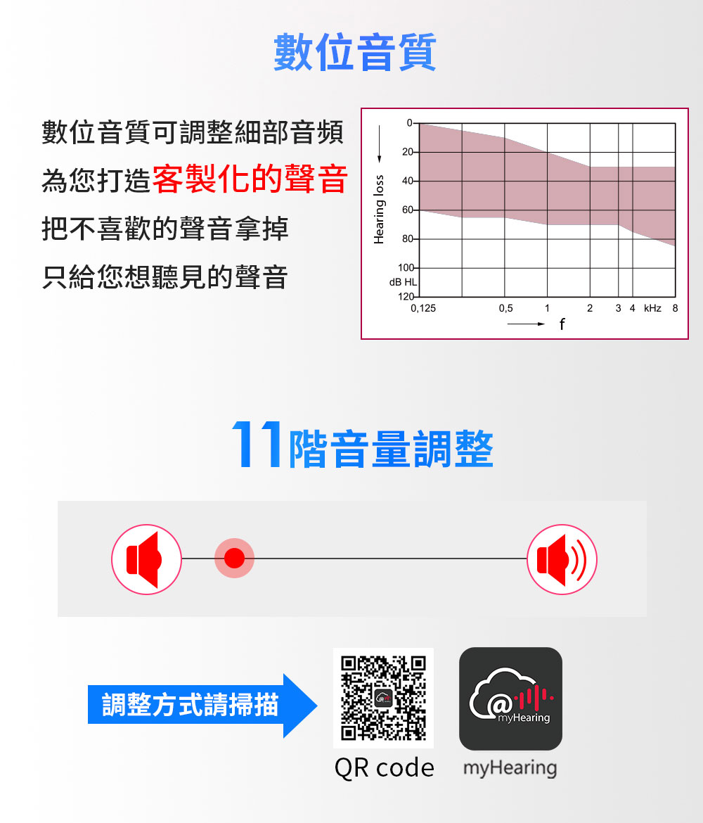 ● 適用於輕中度聽損,40~60分貝聽損適用